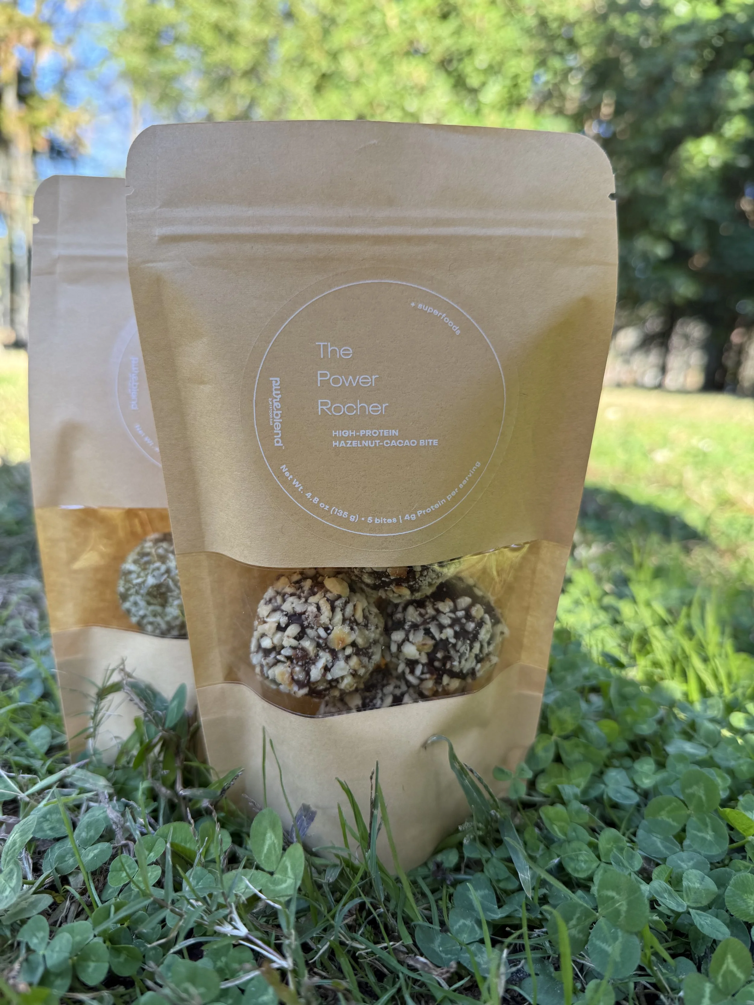 A better-for-you twist on a classic chocolate indulgence. Each bite features a whole toasted hazelnut center surrounded by a creamy cacao and Medjool date base, boosted with plant-based protein for lasting energy. Finished with a dark-chocolate shell, it delivers richness without the additives, flour, or refined sugar.